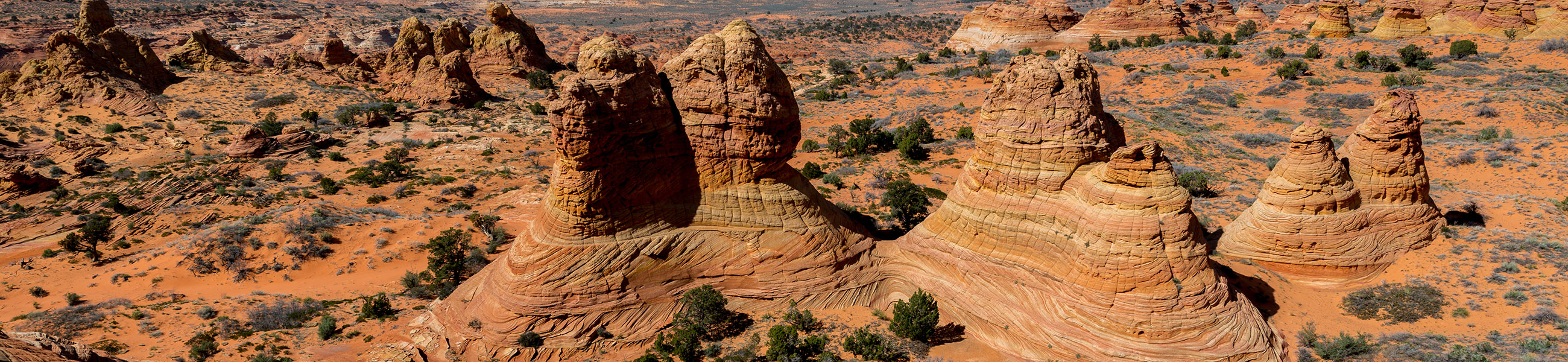 Petit plateau de slickrock accessible à partir de la piste House Rock Valley Road et du parking de Buckskin Gulch Trailhead. Un sentier facile d'environ 5 miles aller-retour (8 km) mène à ce lieu riche en formations rocheuses créées par l'érosion. Brainrocks, dentelle, vagues, teepees et même des poches d'eau après des périodes de pluie, tout y est ! L'endroit reste encore peu fréquenté bien qu'il s'agisse souvent d'une alternative à The Wave, quand on n'a pas été tiré au sort à la fameuse loterie...